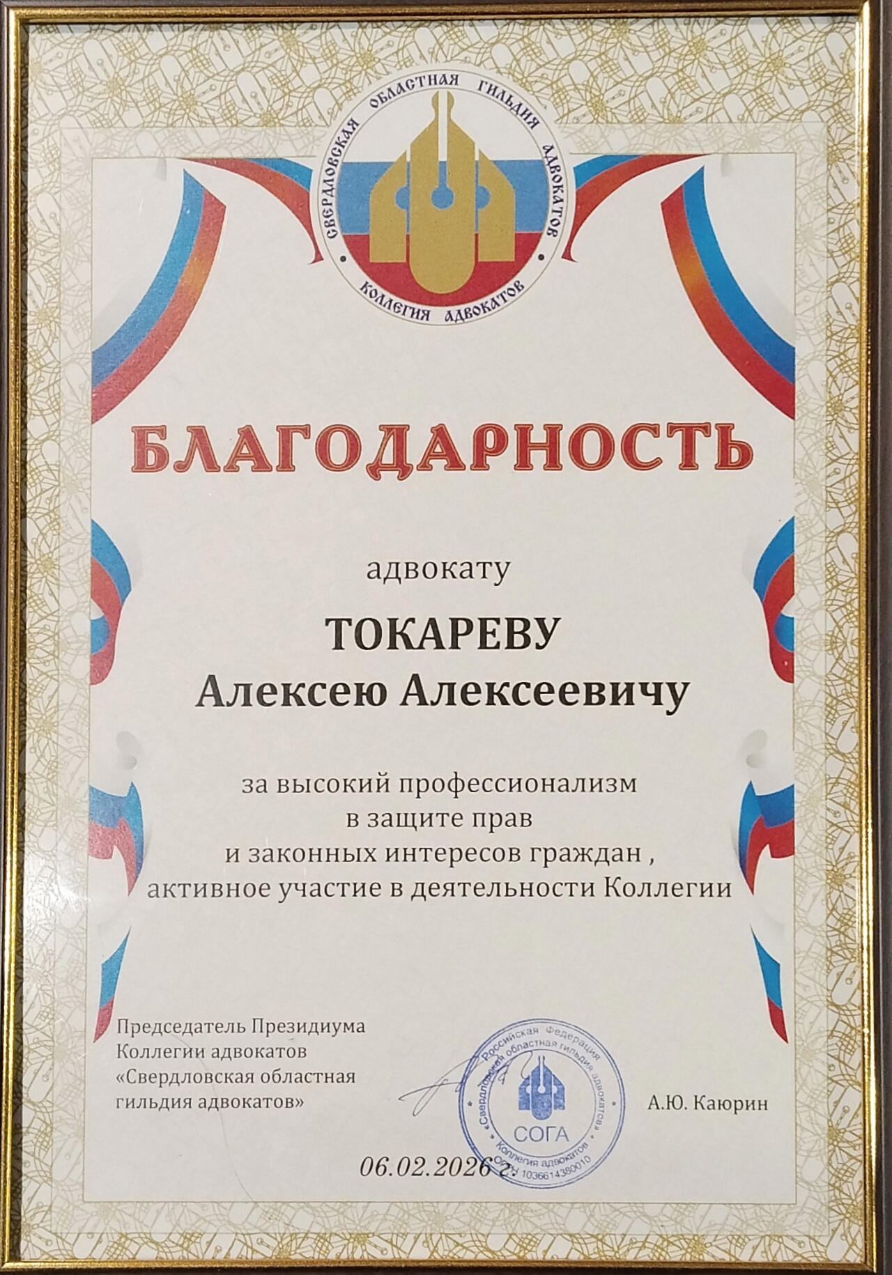 2010г. Благодарностью Адвокатской Палаты Свердловской области